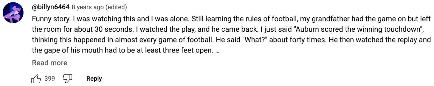 At the 2014 ESPY Awards, it was named the best play and the best game of the year in all of North American sports. Some have said it's the greatest single moment in college football history.