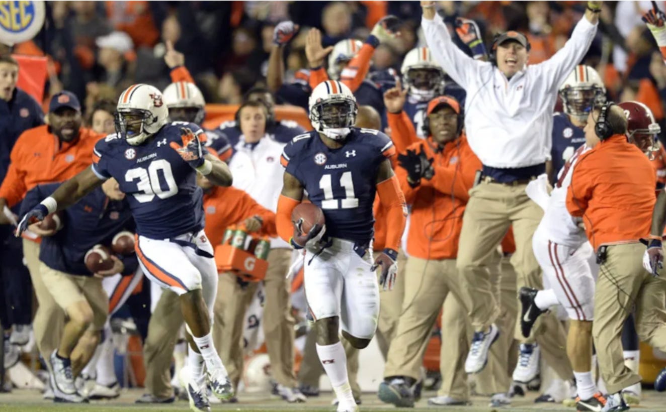 Auburn had trailed, but rallied to tie the game with just over 30 seconds remaining. Alabama quickly marched down the field and had one second left on the clock to try and win it. Madness then ensued.